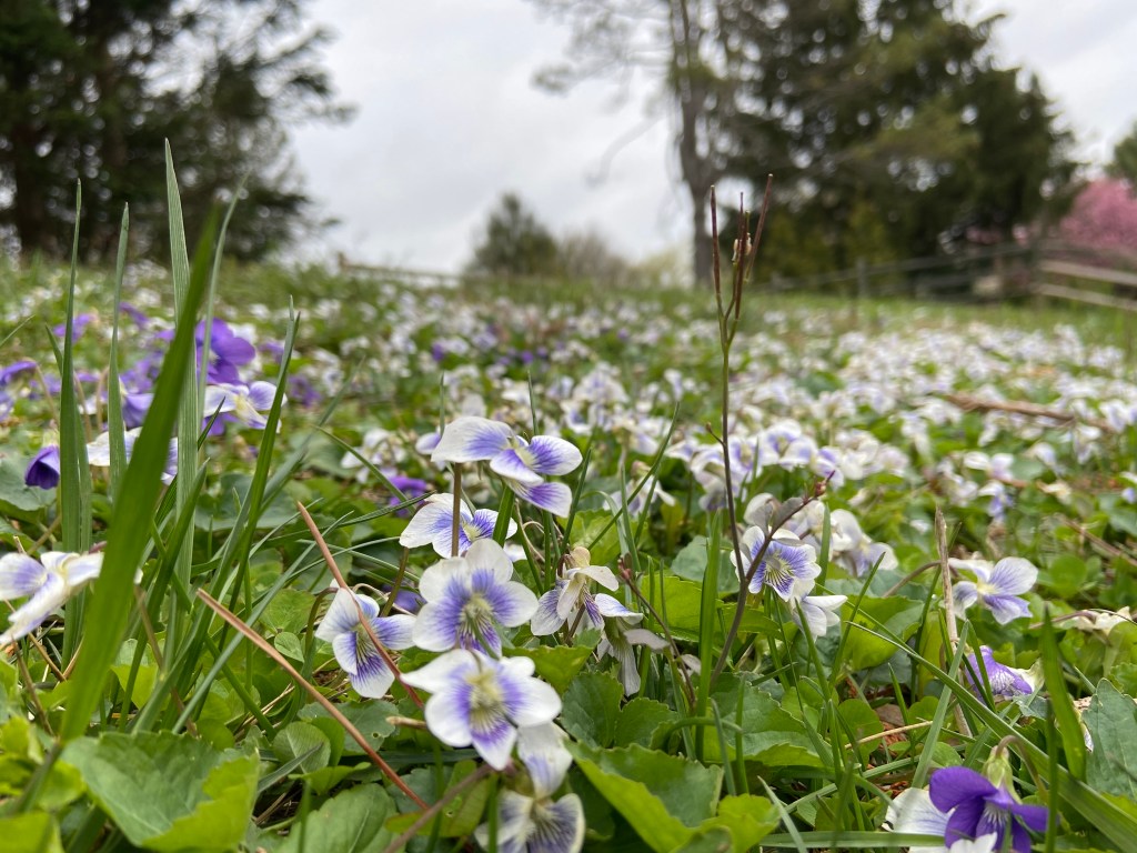 As I grumpily walked outside to do the yard work I would not have been assigned had I still been living at school, I noticed something growing in the grass. A beautiful patch of purple and white flowers were sprouting, making my ordinary backyard feel more like a meadow.